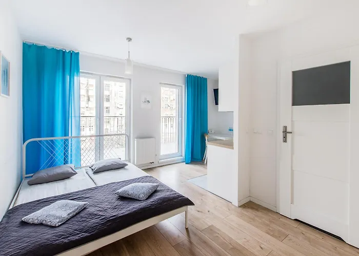 Blue Apartment With A Terrace Breslavia, di 23 m^2,include un patio e si trova a 300 metri da Kosciol Chrzescijan Baptystow. Le attrazioni della zona includono il Giardino giapponese, a circa 25 minuti a piedi, e lo Zoo di Wroclaw, a una distanza di 2 km dall'appartamento.